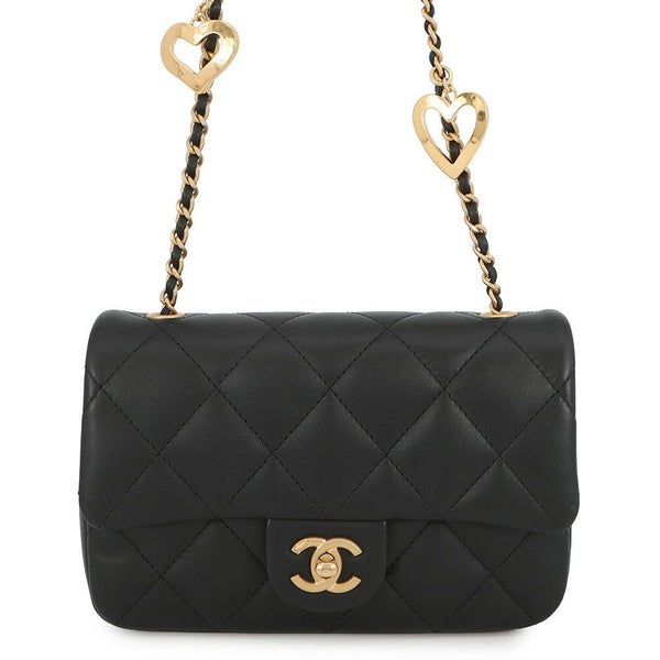 6. シャネル チェーンショルダーバッグ ミニ マトラッセ ココマーク AS3456 CHANEL ハート 黒