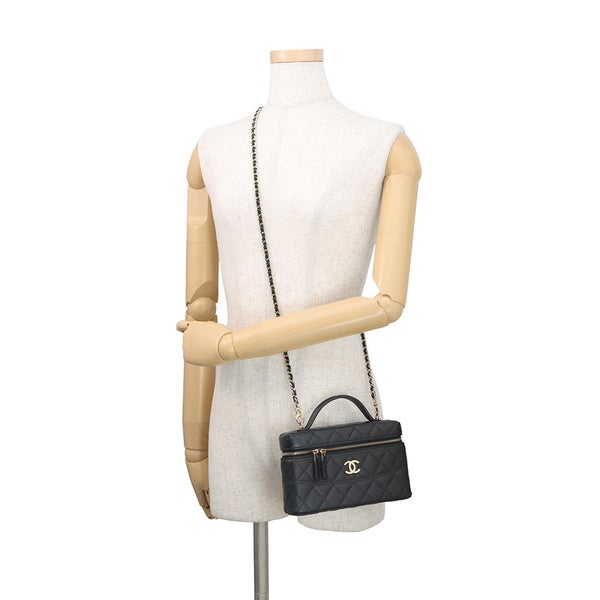 シャネル チェーンショルダーバッグ ヴァニティケース ココマーク キャビアスキン AP4407 CHANEL バニティ 黒 安心保証