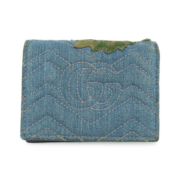 5. グッチ 二つ折り財布 GGマーモント ダブルG ミニウォレット 466492 GUCCI 財布 シェブロン キルティング カードケース 花 刺 安心保証