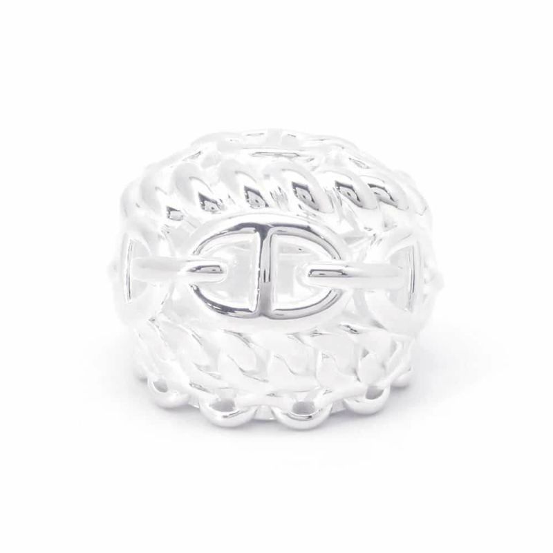 馬具工房としてスタートしたエルメスですが、2代目エミール・エルメスからメゾンは新たな分野の商品開発を進めます。その一つに、アクセサリー(ジュエリー)がありました。1938年にはエルメスの4代目社長であるロベール・デュマが船の錨(シェーヌ・ダンクル)から着想を得てデザインしたエルメスの名作「シェーヌ・ダンクル」をメゾン初のシルバージュエリーとして発表。その後も、「コリエドシアン」や「ポップH」「アミュレット」など数々の人気モデルを展開し、レザー以外のアイテムにおいても人々を魅了しています。
