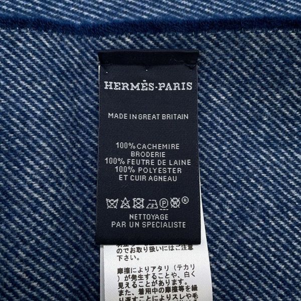 6. エルメス マフラー カレッジ ワッペン デニム カシミヤ HERMES ストール