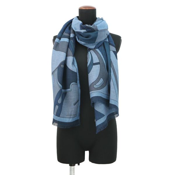 6. エルメス ストール セル/無秩序 Selle en Desordre カシミヤ シルク HERMES 2022秋冬 メンズ