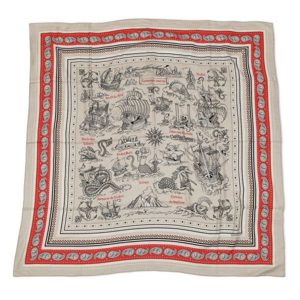 6. エルメス スカーフ カレ140 カレジェアン 船乗りのタトゥー・バンダナー Tatouages Marins カシミヤ シルク 2024年春夏