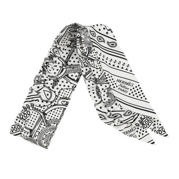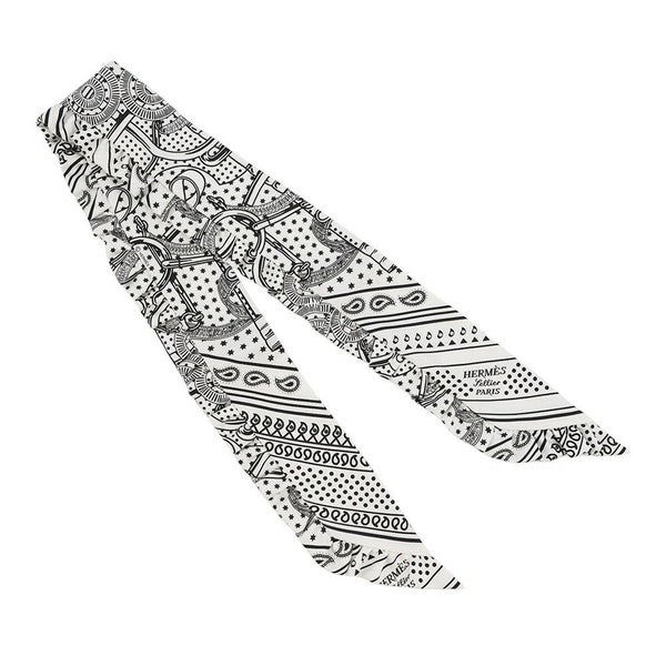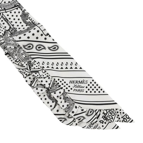 6. エルメス スカーフ ツイリー フリル エプロン・ドール・バンダナ シルク HERMES 2024年春夏 黒 白