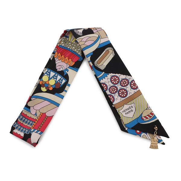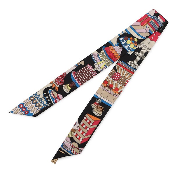 6. エルメス スカーフ ツイリー ラ パティスリー フランセーズ チャーム HERMES シルク 2023秋冬 ツイリー創立20周年 黒 安心保証