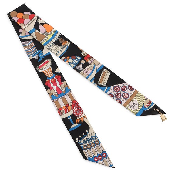 3. エルメス スカーフ ツイリー ラ パティスリー フランセーズ チャーム HERMES シルク 2023秋冬 ツイリー創立20周年 黒 安心保証