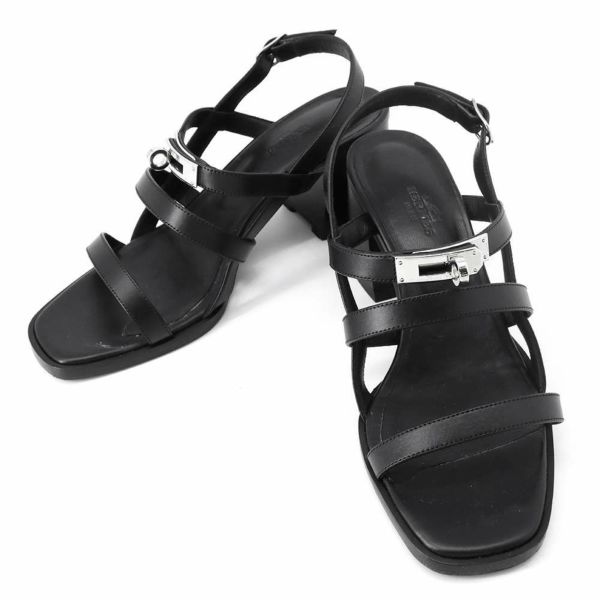 5. エルメス サンダル イブ ケリー レザー レディースサイズ36 1/2 HERMES 靴 黒 安心保証