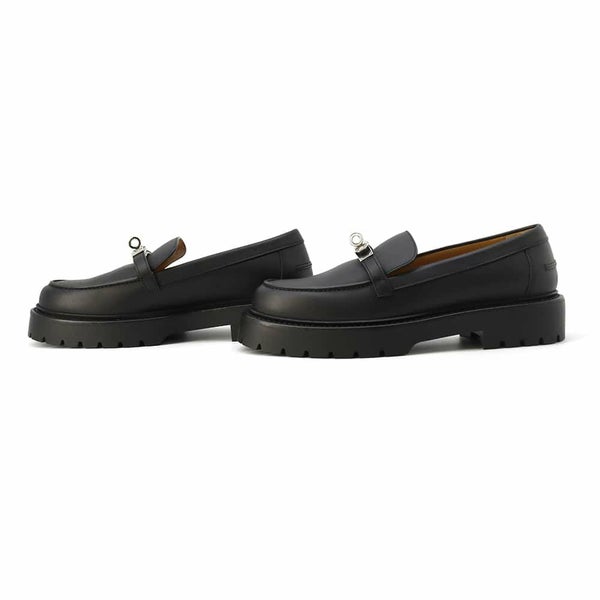 5. エルメス モカシン アイコン カーフレザー レディースサイズ37 HERMES 靴 黒