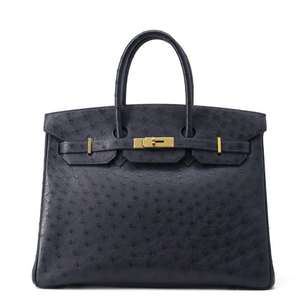 7. エルメス バーキン35 ブルーインディゴ/ゴールド金具 オーストリッチ □I刻印 HERMES Birkin ハンドバッグ 安心保証
