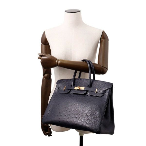 5. エルメス バーキン35 ブルーインディゴ/ゴールド金具 オーストリッチ □I刻印 HERMES Birkin ハンドバッグ 安心保証