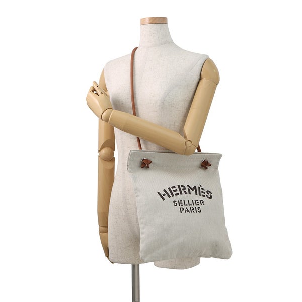 エルメス ショルダーバッグ サック アリーヌMM エクリュ/フォーヴ/シルバー金具 トワルシェブロン/バレニア W刻印