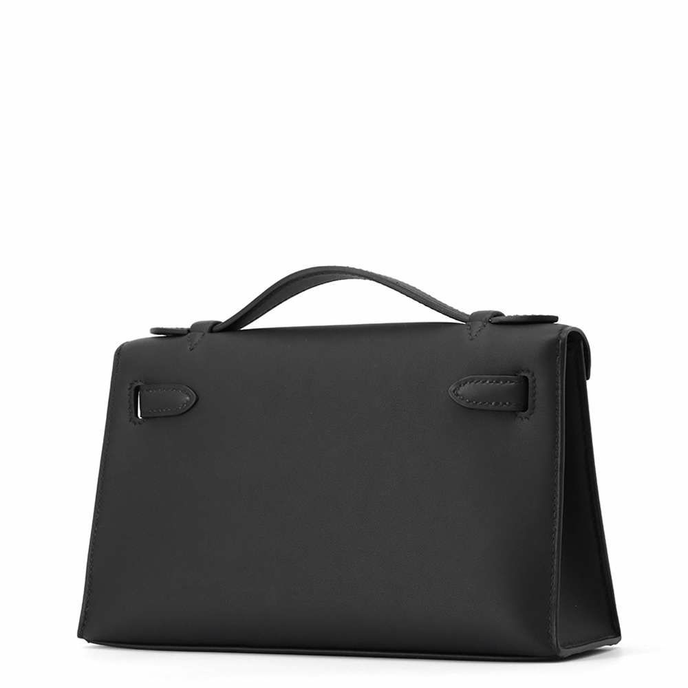 5. エルメス ハンドバッグ ポシェットケリー ブラック/シルバー金具 スイフト K刻印 HERMES バッグ 黒