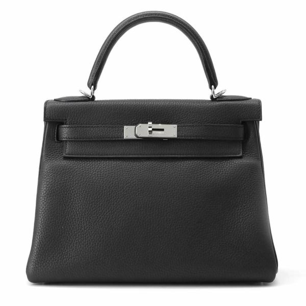 5. エルメス ハンドバッグ ケリー28 内縫い プロン/シルバー金具 トゴ X刻印 2wayショルダー 黒 安心保証