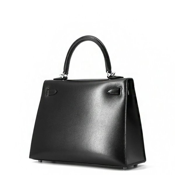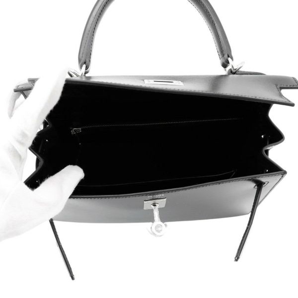 5. エルメス ハンドバッグ ケリー25 外縫い ブラック/シルバー金具 ボックスカーフ K刻印 HERMES Kelly 2wayバッグ 黒