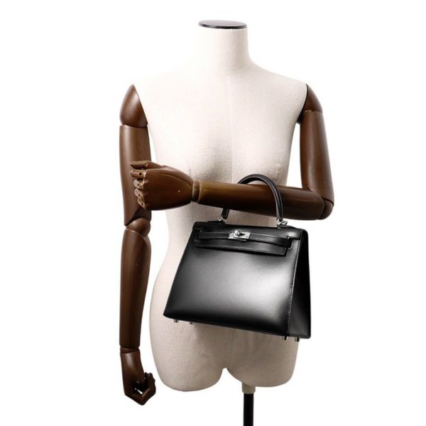 7. エルメス ハンドバッグ ケリー25 外縫い ブラック/シルバー金具 ボックスカーフ K刻印 HERMES Kelly 2wayバッグ 黒