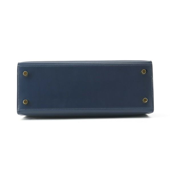 5. エルメス ハンドバッグ ケリー25 外縫い ブルードプリュス/ゴールド金具 ボックスカーフ U刻印 2wayショルダー 安心保証