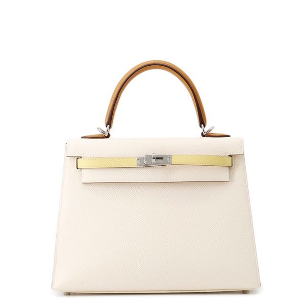 5. エルメス ケリー25 トリコロール 外縫い ナタ/セサミ/ジョーヌプッサン/シルバー金具 エプソン Z刻印 2wayショルダー