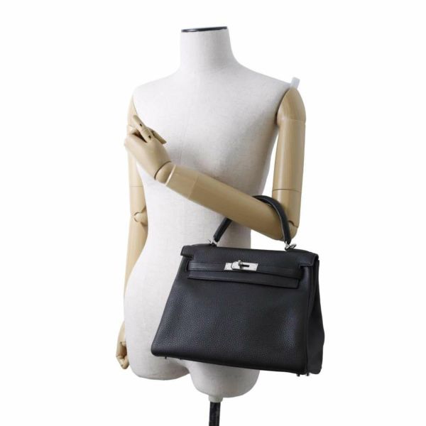 5. エルメス ハンドバッグ ケリー28 内縫い プロン/シルバー金具 トゴ X刻印 2wayショルダー 黒 安心保証