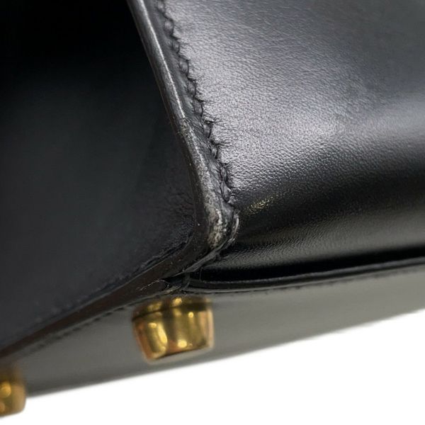 5. エルメス ハンドバッグ ケリー32 外縫い ブラック/ゴールド金具 ボックスカーフ 〇W刻印 2wayショルダー 黒 安心保証