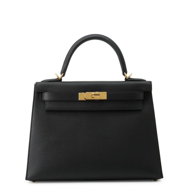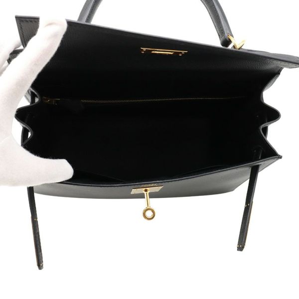 5. エルメス ハンドバッグ ケリー28 外縫い ブラック/ゴールド金具 エプソン Z刻印 2wayショルダー 黒 安心保証