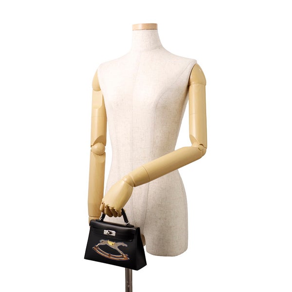 エルメス ミニケリー2 外縫い シュヴァル・ド・ボワ ブラック/シルバー金具 タデラクト W刻印 2wayショルダー 黒