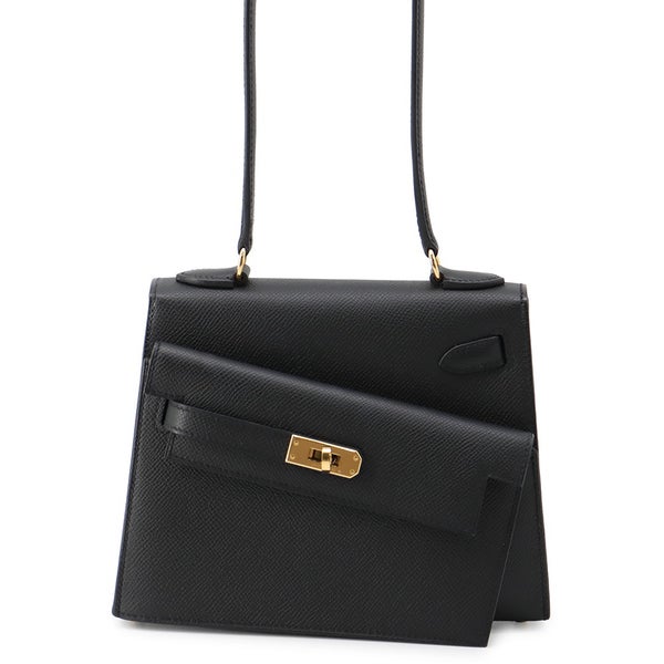 エルメス ショルダー バッグ ケリー20 無秩序 外縫い ブラック/ゴールド金具 エプソン K刻印 黒 安心保証