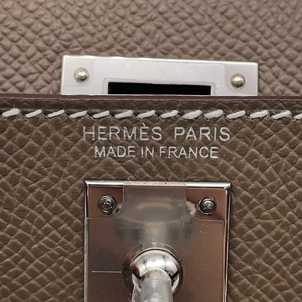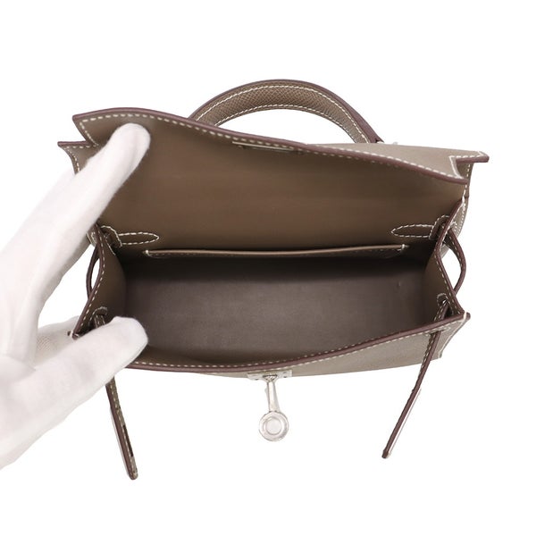 7. エルメス ハンドバッグ ミニケリー2 外縫い エトゥープ/シルバー金具 エプソン W刻印 2wayショルダー