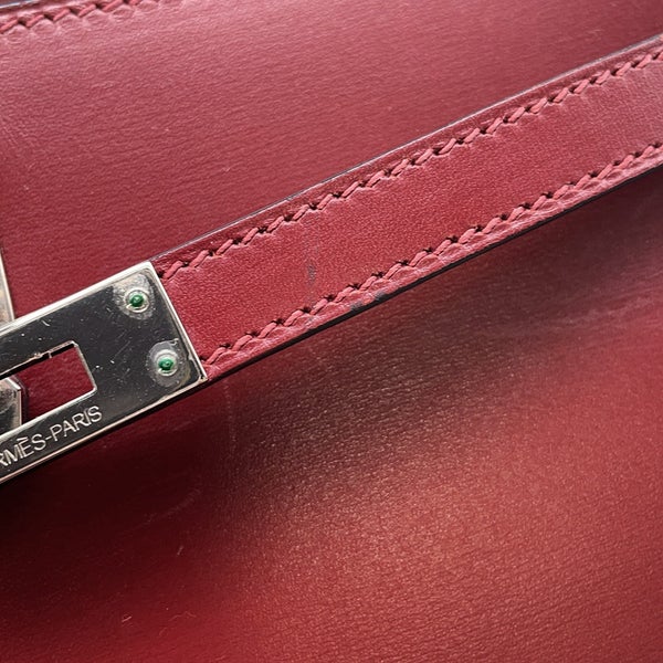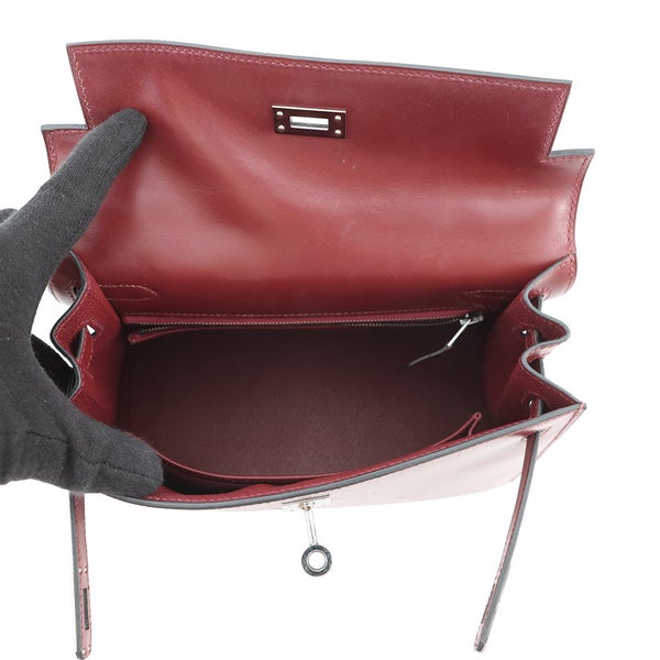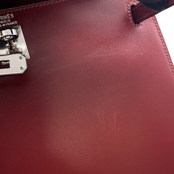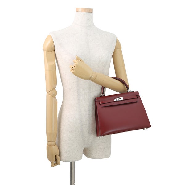 5. エルメス ハンドバッグ ケリー25 外縫い ルージュアッシュ/シルバー金具 ボックスカーフ □J刻印 2wayショルダー 安心保証
