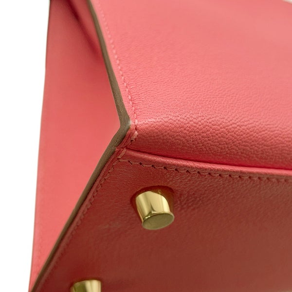7. エルメス ハンドバッグ ケリー25 外縫い ローズリップスティック/ゴールド金具 シェブルミゾル D刻印 2wayショルダー 安心保証
