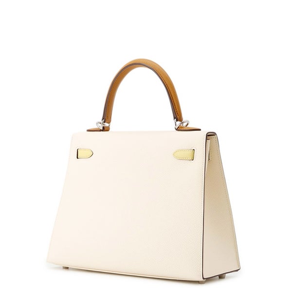 5. エルメス ケリー25 トリコロール 外縫い ナタ/セサミ/ジョーヌプッサン/シルバー金具 エプソン Z刻印 2wayショルダー