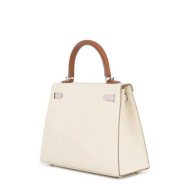 3. エルメス ハンドバッグ ケリー25 外縫い トリコロール クレ/ゴールド/モーヴペール/シルバー金具 エプソン W刻印 2wayショルダー 安心保証