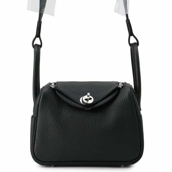 5. エルメス リンディ ミニ ブラック/シルバー金具 トリヨンクレマンス K刻印 2wayショルダー 黒