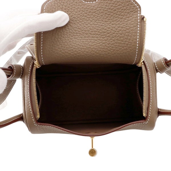 3. エルメス リンディ ミニ エトゥープ/ゴールド金具 トリヨンクレマンス G刻印 2wayショルダー