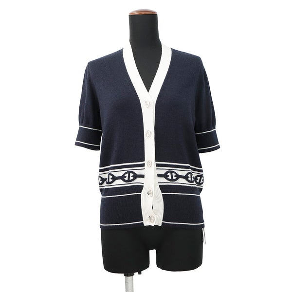 6. エルメス カーディガン シェーヌダンクル ニットカーディガン シルク カシミヤ レディースサイズ36 HERMES 半袖 安心保証