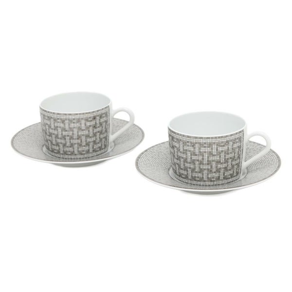 エルメス ティーカップ ◆新品◆ エルメス ティーカップ HERMES エルメス ティーカップ ソーサー モザイク24 プラチナ 2客セット 160ml HERMES 食器 ギフト ペア 白