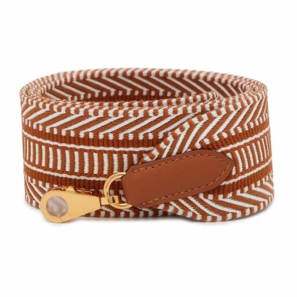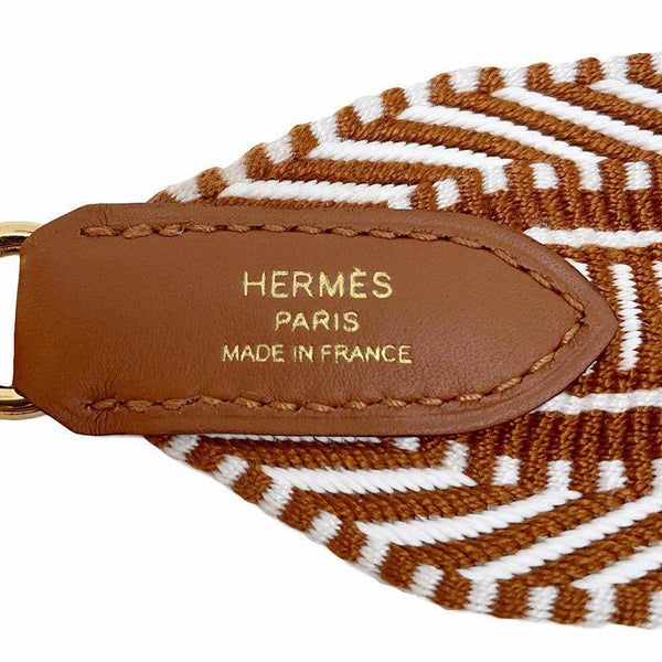 5. エルメス ショルダーストラップ バンドリエール サングル カヴァル エクリュ/ベージュ/ゴールド キャンバス W刻印