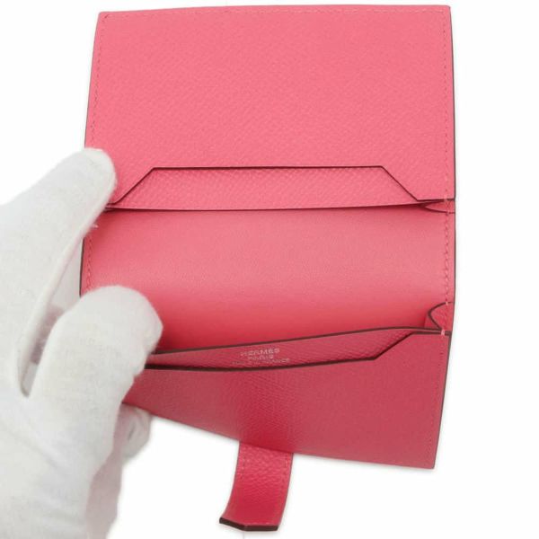 5. エルメス カードケース ベアン ミニ ローズアザレ/シルバー金具 ヴォーエプソン W刻印 名刺入れ