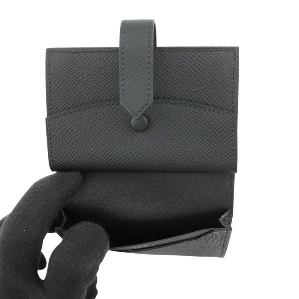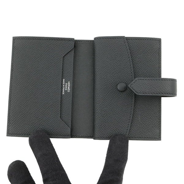 5. エルメス カードケース ベアン ミニ 小銭入れ付き ブラック/シルバー金具 エプソン B刻印 黒