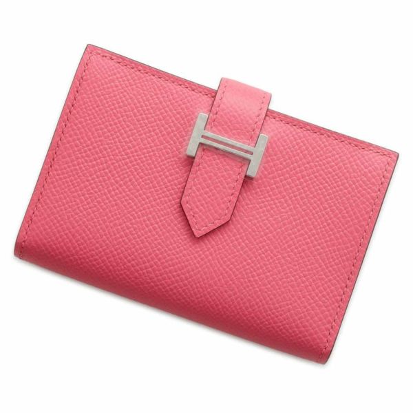 5. エルメス カードケース ベアン ミニ ローズアザレ/シルバー金具 ヴォーエプソン W刻印 名刺入れ