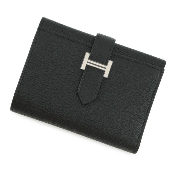 5. エルメス 三つ折り財布 ベアンコンビネ ブラック/シルバー金具 シェブルミゾル B刻印 HERMES 財布 黒