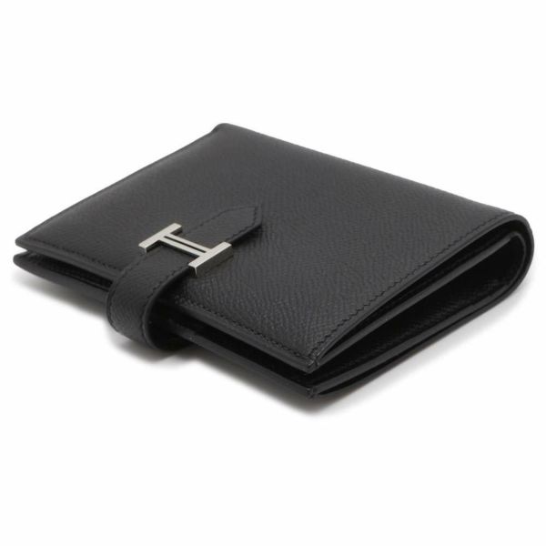 5. エルメス 二つ折り財布 ベアンコンパクト ブラック/シルバー金具 エプソン B刻印 HERMES 黒 安心保証