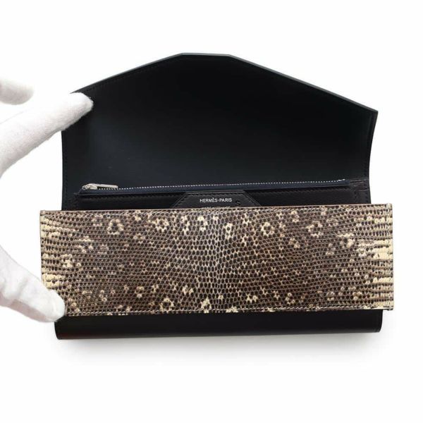 5. エルメス 長財布 パッサンロング オンブレ ブラック/シルバー金具 エバーグレイン/リザード C刻印 HERMES 財布 黒 ソルド品 安心保証