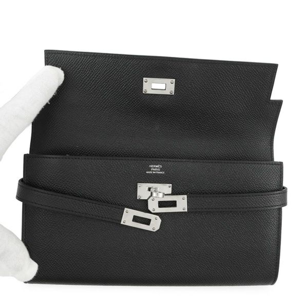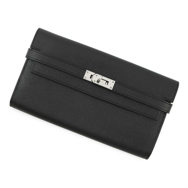 5. エルメス 長財布 ケリーウォレット ロング ブラック/ゴールド金具 エプソン X刻印 HERMES 財布 黒 安心保証