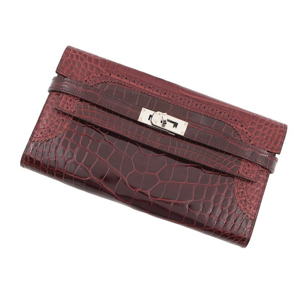 エルメス 長財布 ケリーウォレット ギリーズ ルージュアッシュ/シルバー金具 アリゲーター/アリゲーターマット D刻印 安心保証