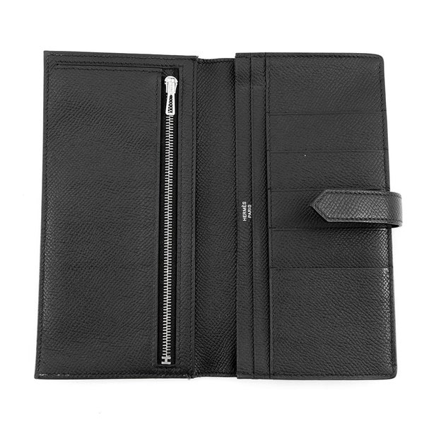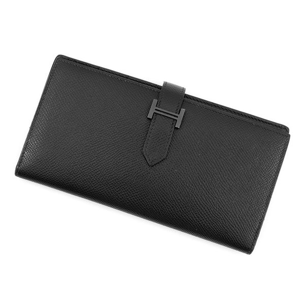 エルメス 長財布 ベアンスフレ マチ有り ブラック/ブラック金具 エプソン U刻印 HERMES 財布 モノクローム 黒 安心保証