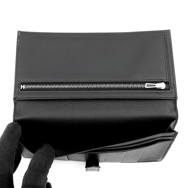 5. エルメス 長財布 ベアンスフレ マチ有り ブラック/ブラック金具 エプソン U刻印 HERMES 財布 モノクローム 黒 安心保証