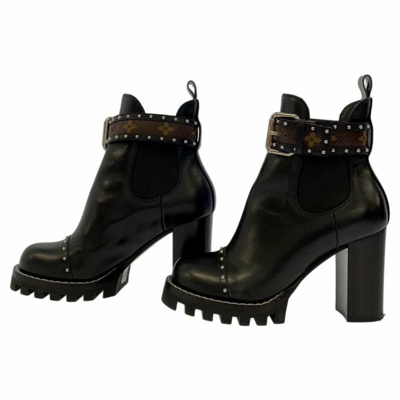 ルイヴィトン ブーツ ◆良品◆ ルイ・ヴィトン モノグラム レディース LOUIS VUITTON ルイヴィトン ブーツ モノグラム スタートレイル・ライン アンクルブーツ レディースサイズ36 ヴィトン 靴 黒 ブラック 安心保証
