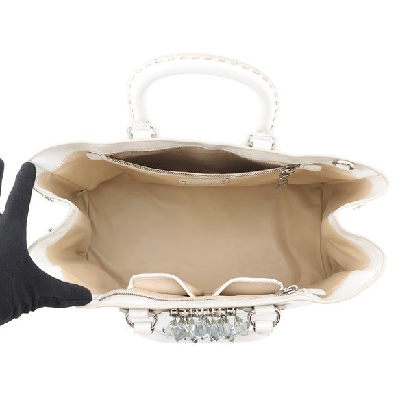 5. プラダ ハンドバッグ クリスタル レザー PRADA 2way 白 安心保証