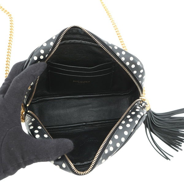 5. サンローランパリ チェーンショルダーバッグ ルー ドット 612563 SAINT LAURENT PARIS タッセル付き 黒 白 安心保証