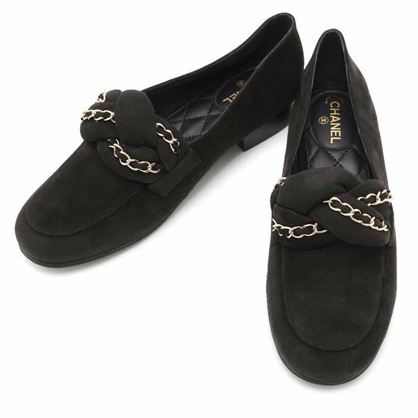 5. シャネル ローファー ココマーク チェーン スエード レディースサイズ37C G32955 CHANEL 靴 黒 安心保証